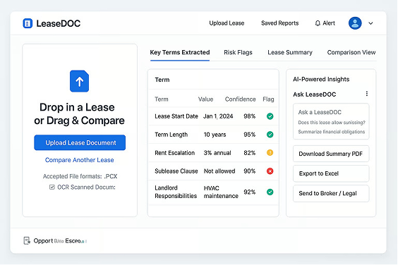 The platform is designed to help brokers instantly surface risks, obligations, and opportunities ensuring lease clauses are benchmarked for risk mitigation based on market standards.